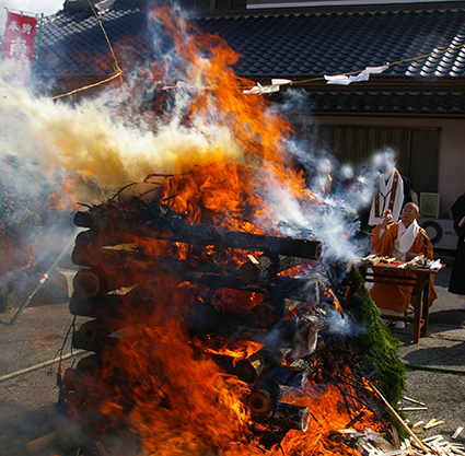 柴灯護摩で、てるてる坊主をお焚き上げ