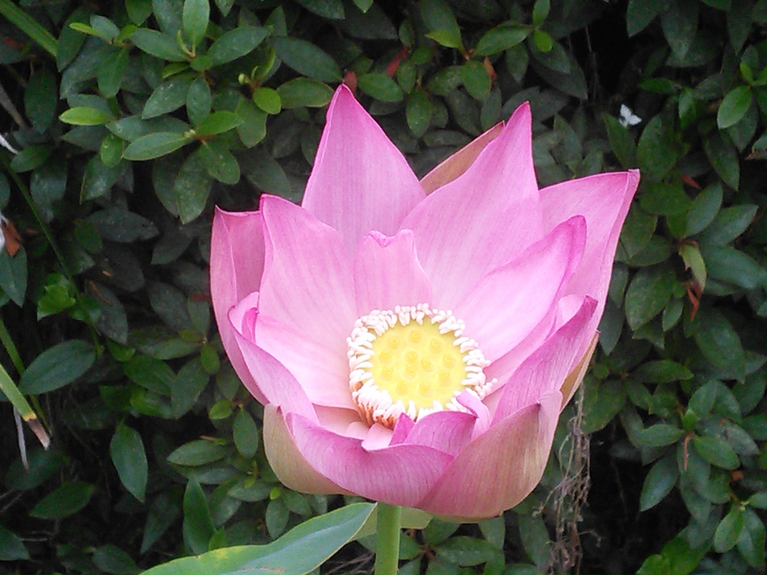 昨年春に頂き、発芽させた蓮が、今日最初の花が開きました。直径10cmほどの可憐な花です。ここ数日、毎朝早く起きてはまだかと見ていました。今朝6時前に半分開いていました。5月24日に花芽を発見してから、20日ほどでした。2番目の花芽が付いていますので、これも楽しみです。kyj