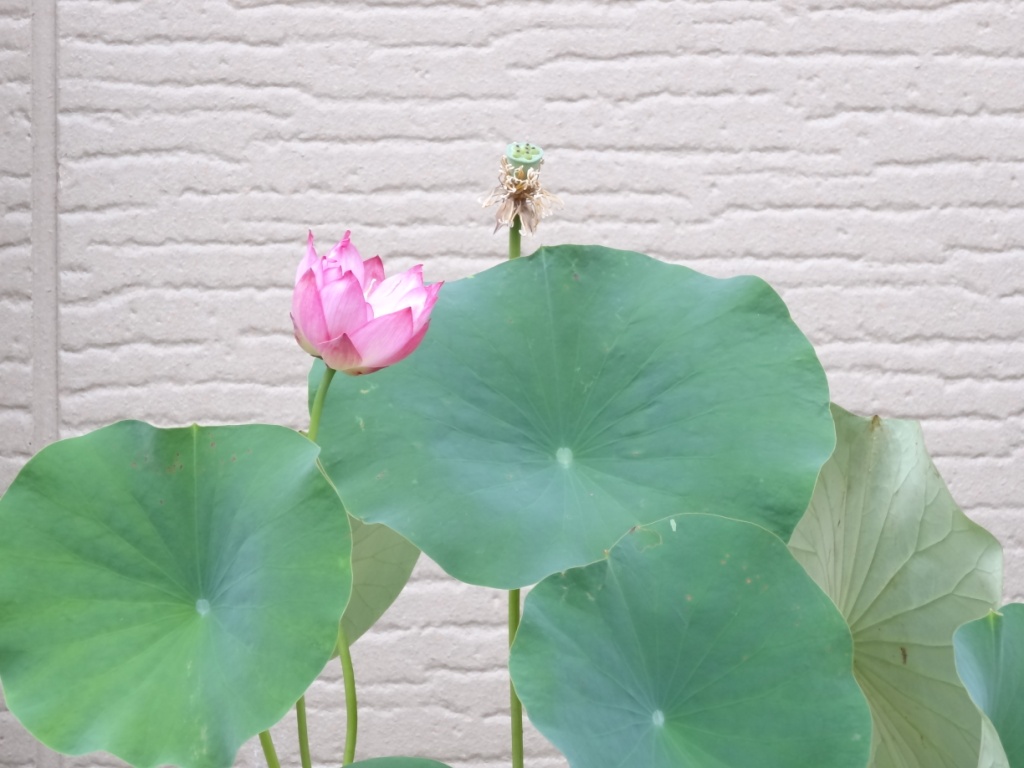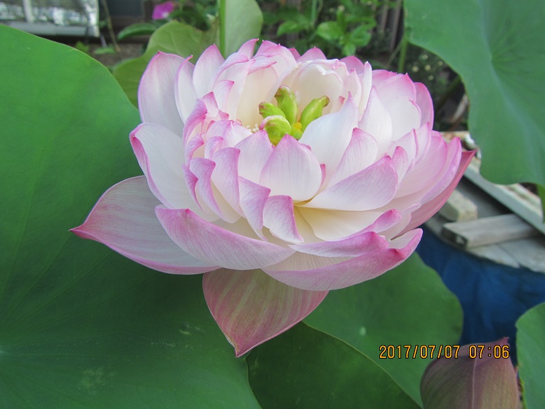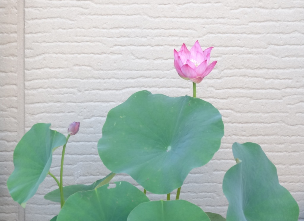17. 昨春、生蓮寺様植替講習会でいただいた蓮苗、二つ目の蕾が開花しました。