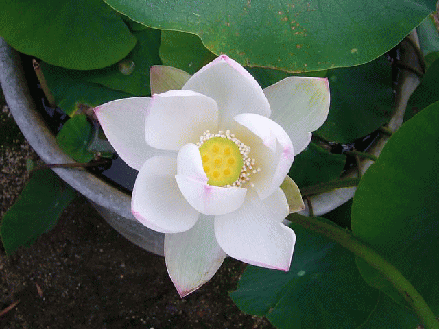 1. おはようございます。昨年いただきました種より育てた蓮、本日咲きました。種からの開花は、初めてなので感激してます。ありがとうございました。白色爪紅、明日どの様に変化するか楽しみです。