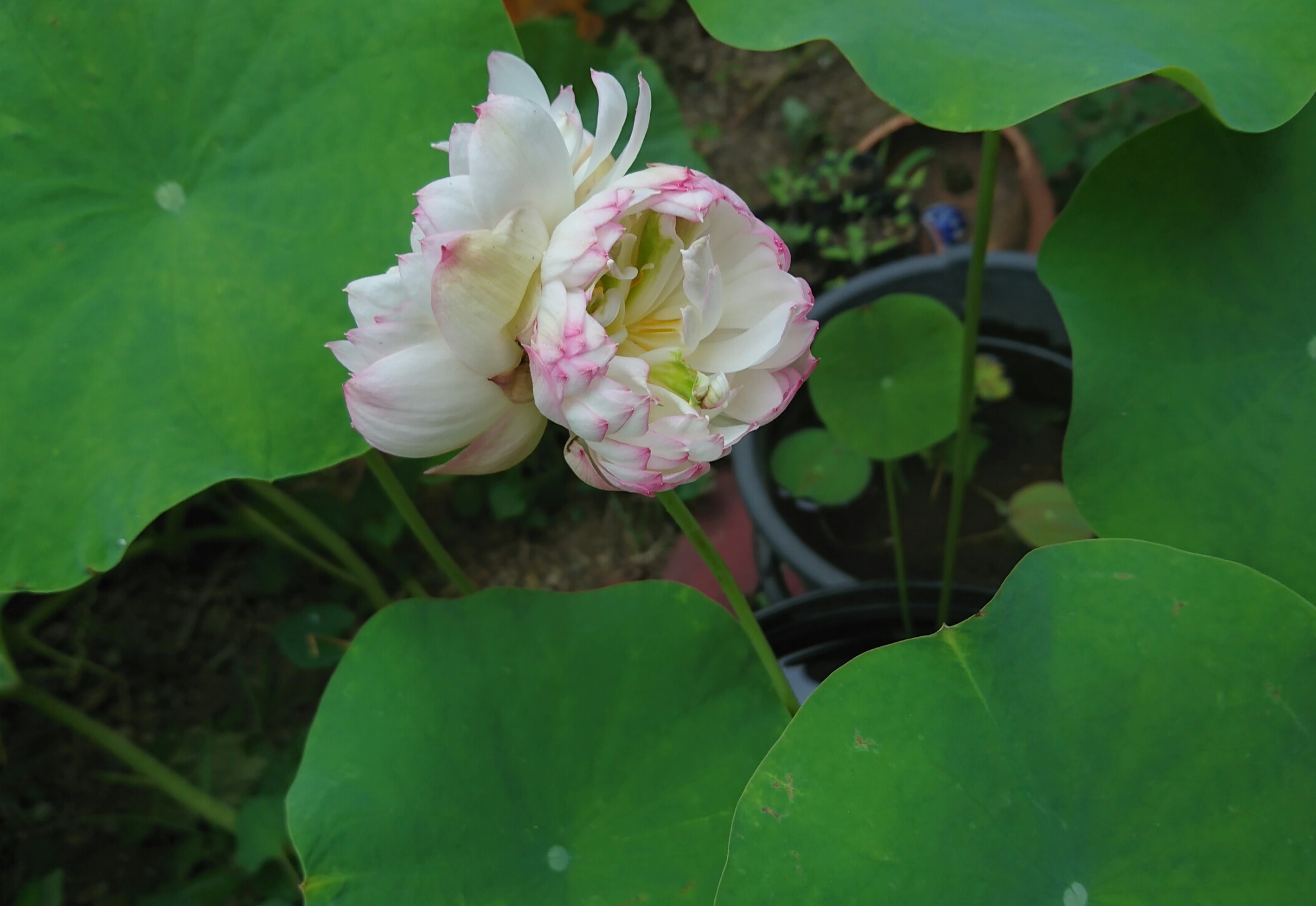 13. 昨春、生蓮寺様植替講習会でいただいた蓮苗、開花しました。
