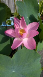 5. 30センチのビニールポット植えで育てる生蓮寺華蓮が、開花しました。